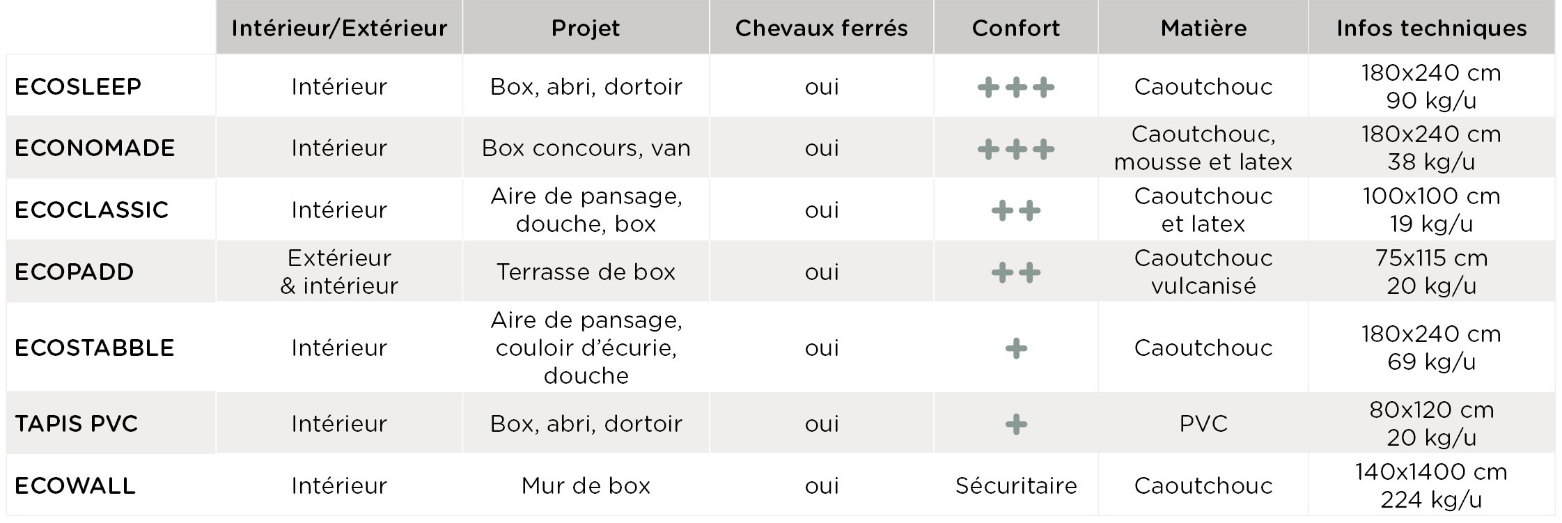 Engagés dans le bien-être absolu de vos chevaux, ECOECURIE vous présente une gamme exclusive de matelas conçus pour rehausser le confort et la sécurité au sein de votre écurie. En choisissant les produits de cette gamme, vous bénéficiez d'économies significatives en termes de litières. Nos prix sont TTC et la livraison est offerte